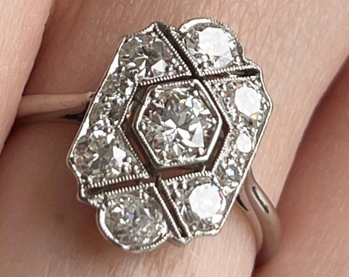 SOLD: French Art Deco hexagonal diamond ring, circa 1940