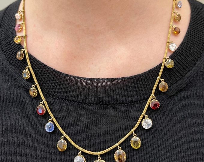 SOLD: Harlequin multi-gem necklace with sapphire, topaz, tourmaline, garnet, spinel, zircon