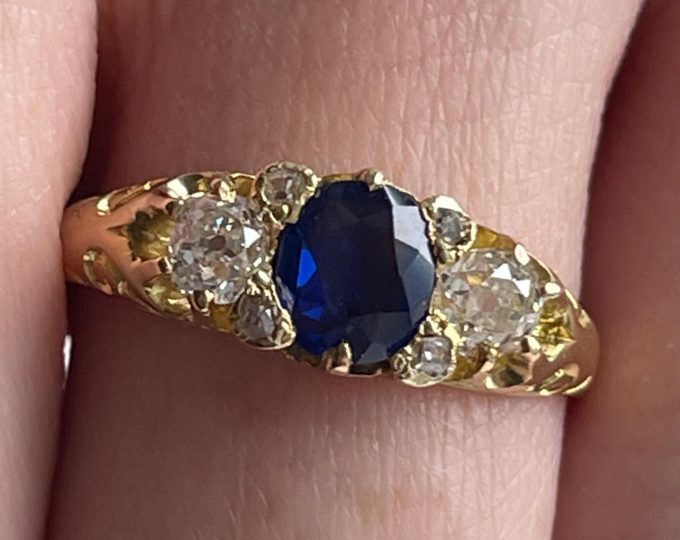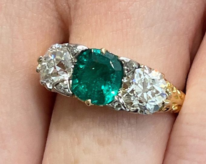 SOLD: Victorian emerald and diamond carved half hoop ring, circa 1890