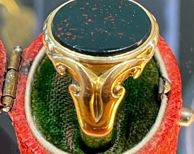 SOLD: Bloodstone signet ring, hallmarked Birmingham 1886