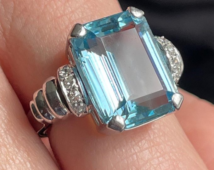 SOLD: Retro aquamarine and diamond cocktail ring, circa 1950