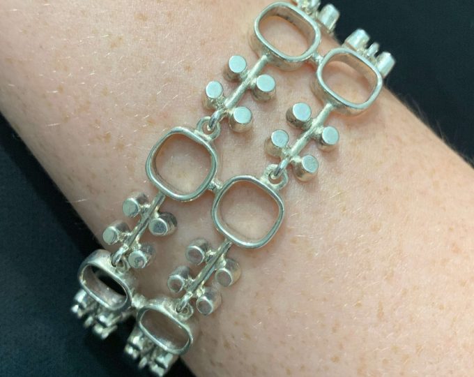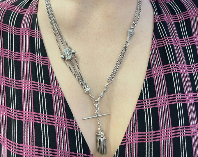 SOLD: Necklace made of two Victorian sterling silver albertine chains, 21 1/2 inches, circa 1890