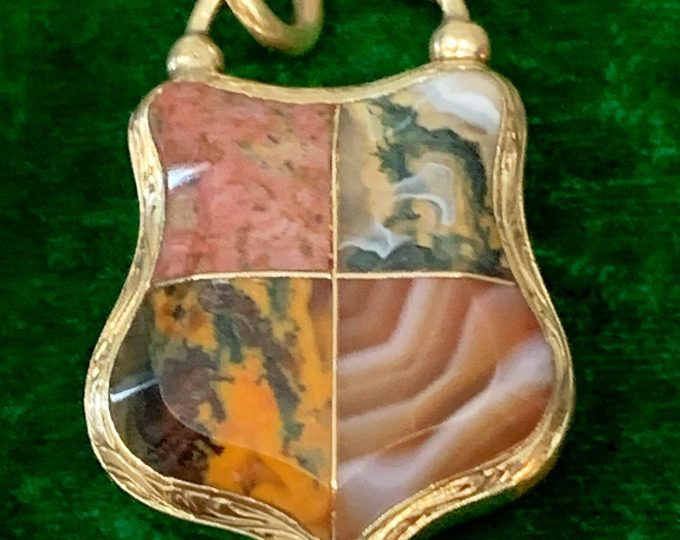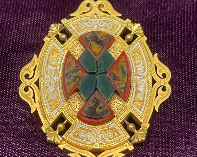 SOLD: Victorian Scottish agate and bloodstone gold pendant/brooch, circa 1880