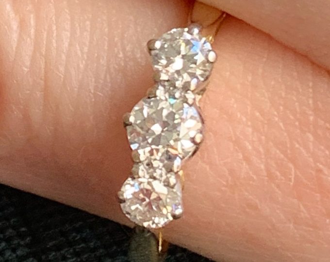 SOLD: Edwardian seven-stone demantoid garnet and diamond carved half-hoop ring, circa 1910