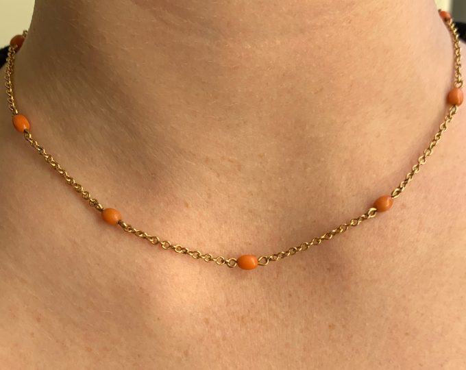 SOLD: Victorian gold coral necklace, 16 1/2 inches, circa 1890