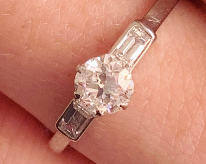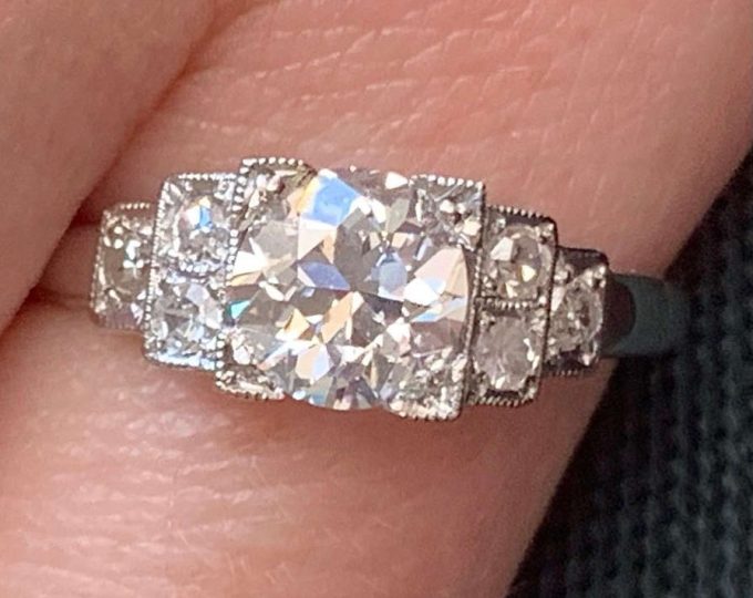SOLD: Art Deco diamond solitaire ring with stepped shoulders, circa 1940