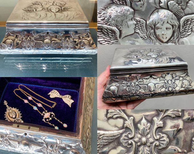 sold gallery SOLD: Victorian heavy yellow gold guard chain, 60 inches, circa 1890 $3,082.00 SOLD: Victorian amethyst and natural pearl brooch, circa 1900 $435.50 SOLD: Victorian gold and enamel ivy leaf vinaigrette, circa 1850, with chain $2,546.00 SOLD: Mid-Victorian 15-carat gold fringe necklace, circa 1870 $2,680.00 SOLD: Edwardian sterling silver jewellery box, hallmarked London 1908 $1,340.00 SOLD: Victorian Scottish agate gold bracelet, circa 1880 $2,546.00 SOLD: Art Deco aquamarine and diamond cocktail ring, almost 11 carats, circa 1940 $10,050.00 SOLD: Edwardian rose gold guard chain, 53 inches, circa 1910 $1,273.00 SOLD: Late Art Deco diamond and sapphire ring, circa 1940 $3,350.00 SOLD: Victorian amethyst gold brooch, circa 1880 $1,005.00 SOLD: Art Deco diamond solitaire engagement ring, circa 1920 $8,040.00 SOLD: Lapponia necklace by Björn Weckström with fantasy cut aquamarine by Bernd Munsteiner $8,040.00 SOLD: Victorian engraved gold snake ring, hallmarked Chester 1899 $737.00 SOLD: Victorian rose gold Albert chain, 15 1/2 inches, circa 1900 $837.50 SOLD: Three-stone sapphire and diamond ring, circa 1950 $804.00 SOLD: Victorian yellow and rose gold tassel, circa 1890 $603.00 ← 1 2 3 … 18 19 20 21 22 23 24 … 43 44 45 → × Cart