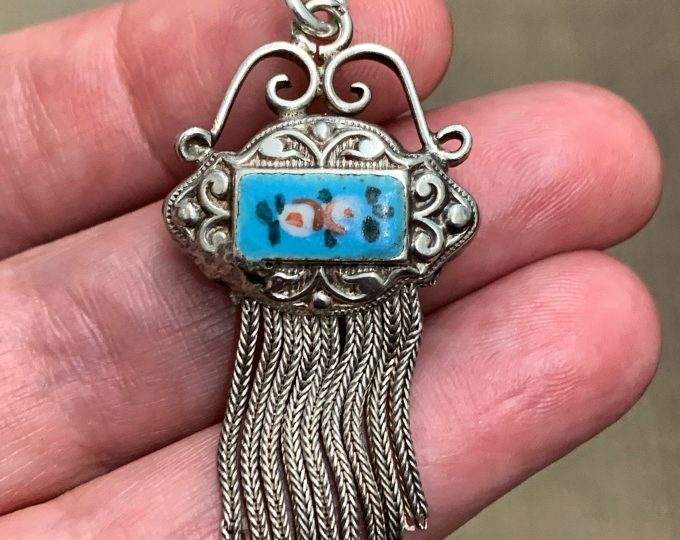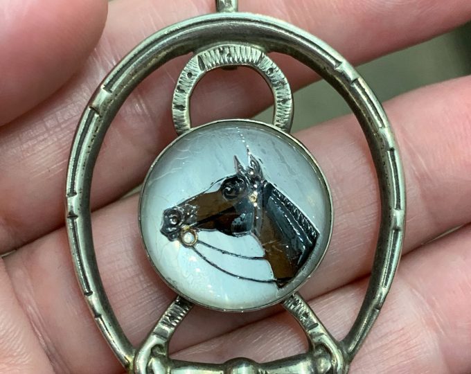 SOLD: Sterling silver pendant with Essex crystal horse and horseshoes, circa 1920