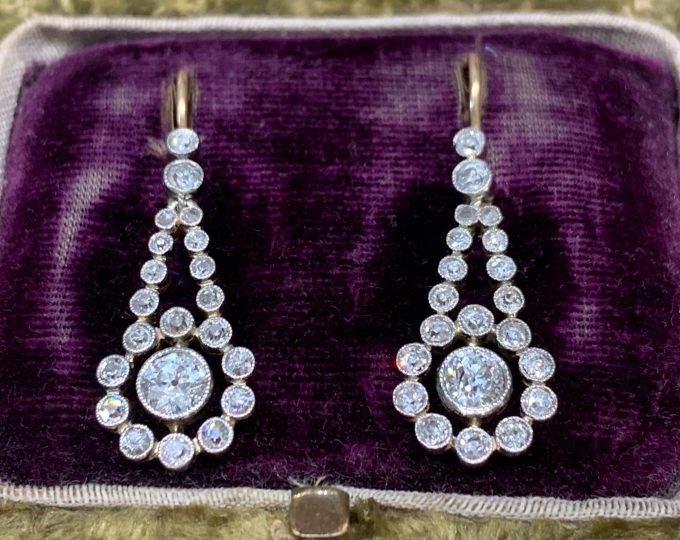 SOLD: Edwardian diamond earrings in gold and platinum, circa 1915