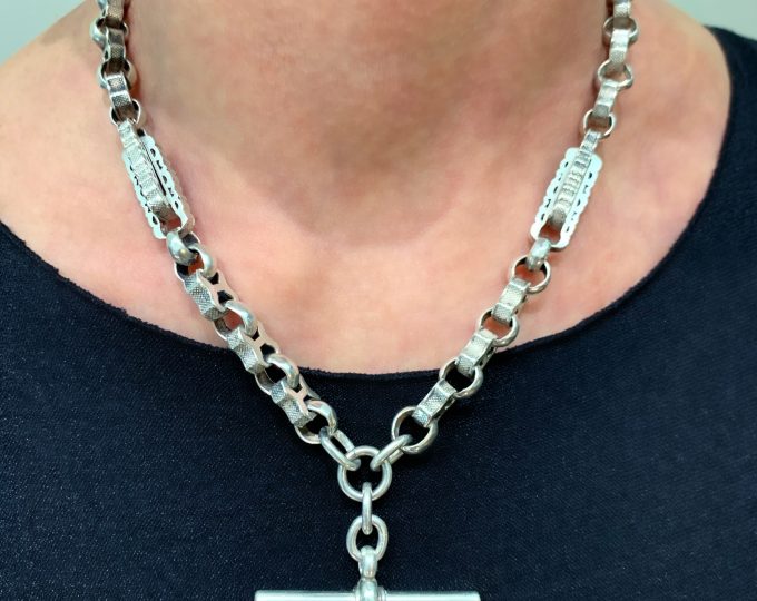 SOLD: Victorian sterling silver watch chain, 16 1/2 inches, circa 1880