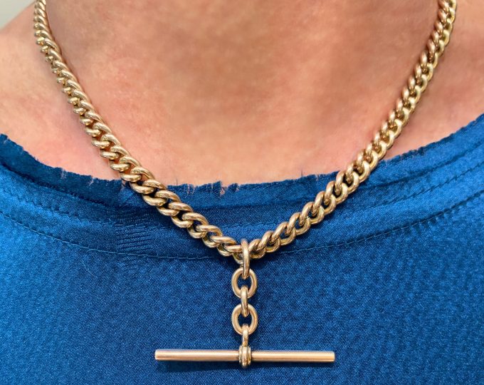SOLD: Victorian rose gold Albert curb watch chain, 15 1/4 inches, circa 1900