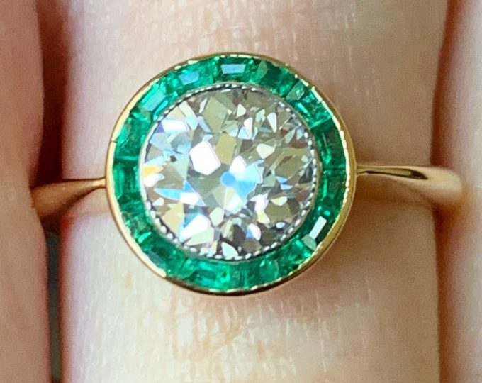SOLD: Art Deco diamond and emerald ring, 1920s centre with new band