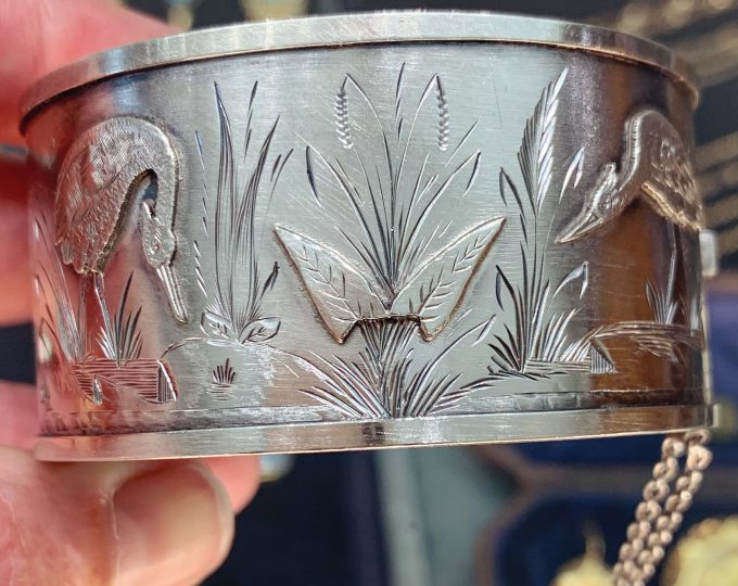 SOLD: Mid-Victorian Aesthetic Movement sterling silver bangle, circa 1875