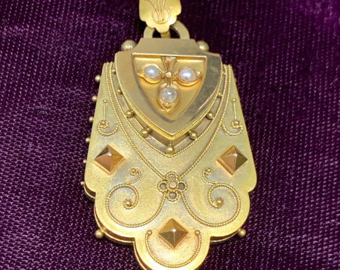 SOLD: Victorian yellow and rose gold locket with natural pearls, circa 1880