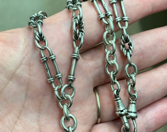 SOLD: Victorian sterling silver watch chain, 16 1/2 inches, circa 1900
