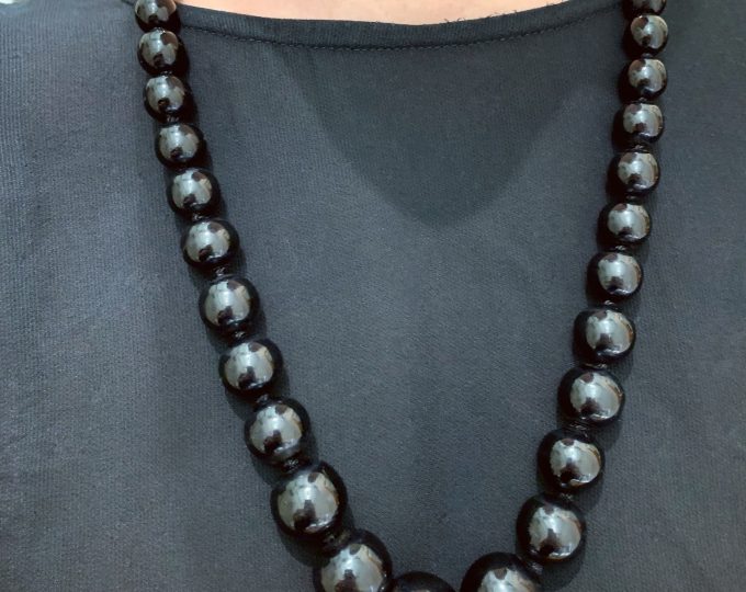 SOLD: Victorian Whitby jet boot with rose gold, circa 1890