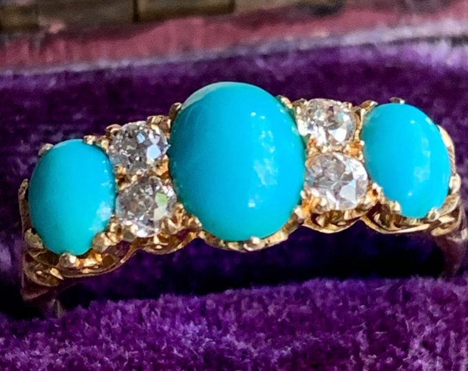 SOLD: Victorian turquoise and diamond half hoop ring, circa 1890