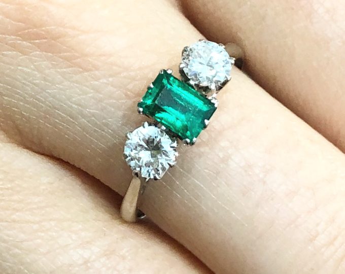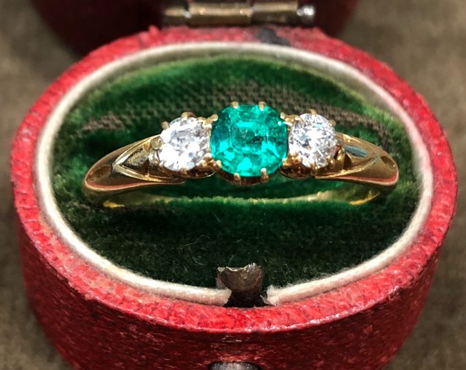 SOLD: Victorian emerald and diamond three-stone ring, circa 1890