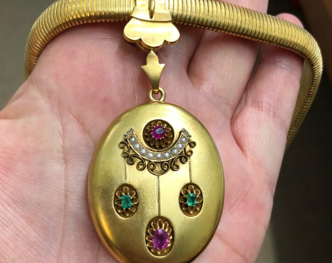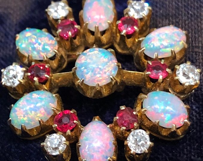 SOLD: Edwardian opal, spinel and diamond pendant/brooch, circa 1901