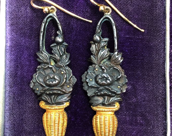 SOLD: Japanese shakudo and gold earrings, circa 1880