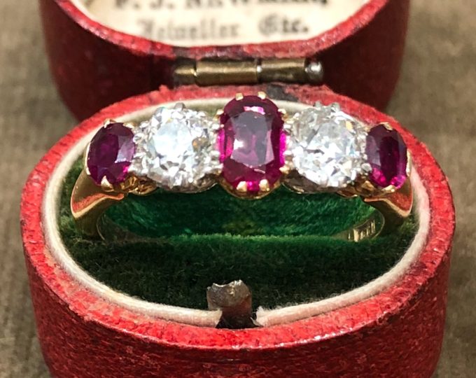 SOLD: Edwardian ruby and diamond five-stone ring, circa 1910