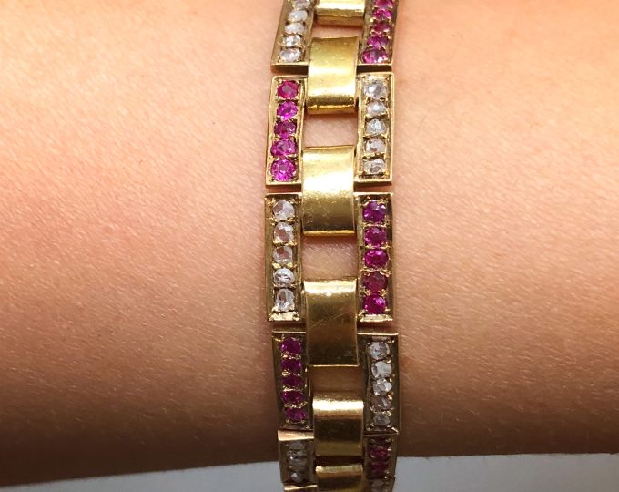 SOLD: Ruby and diamond bracelet in 18-carat gold, circa 1925