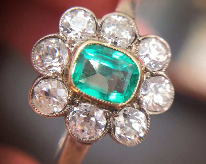 SOLD: Edwardian emerald and diamond ring, circa 1910