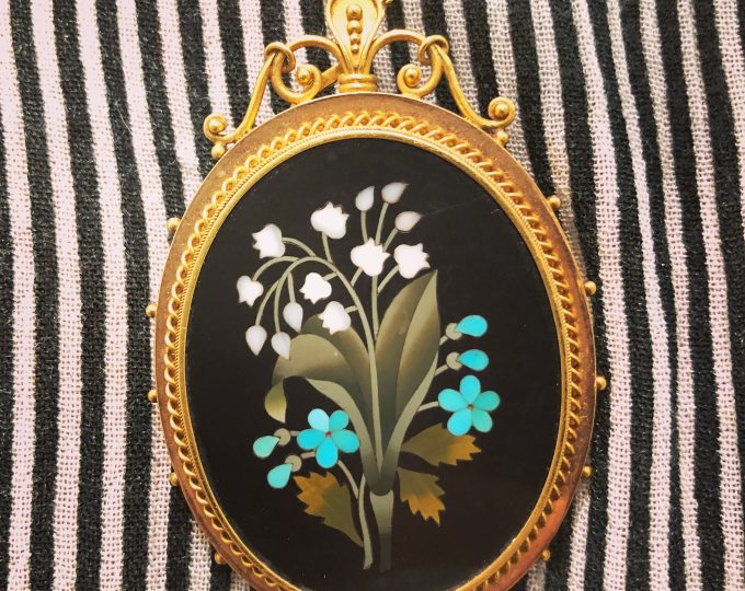 SOLD: Victorian pietra dura pendant/brooch with turquoise and agate, circa 1880