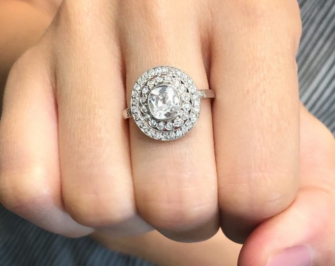 SOLD: Edwardian double halo diamond cluster ring, circa 1915