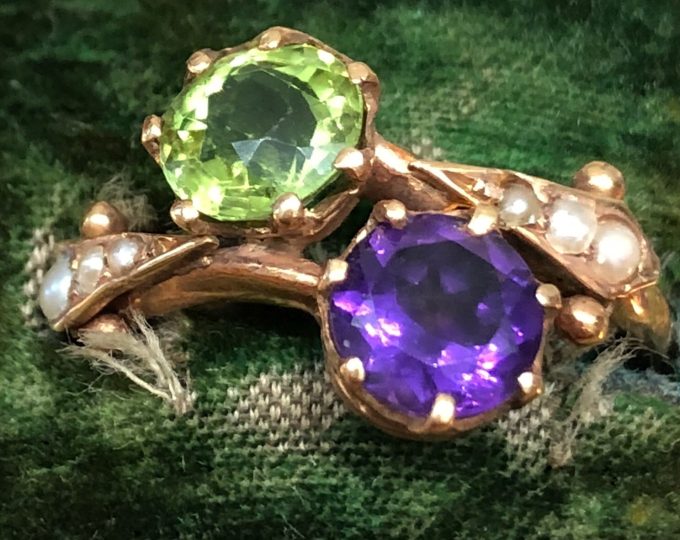 SOLD: Edwardian amethyst, peridot and natural pearl ring, circa 1910