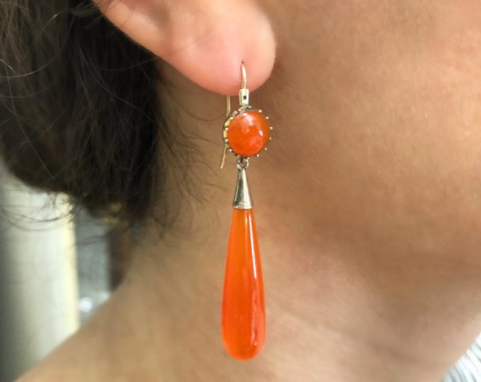 SOLD: Early Victorian carnelian and gold earrings, circa 1850