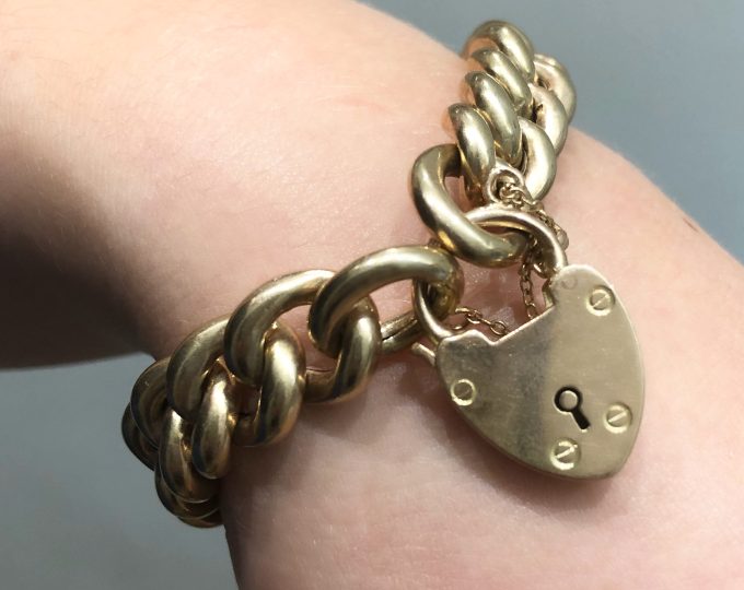 SOLD: Victorian gold bracelet with heart locket, circa 1900, with antique box