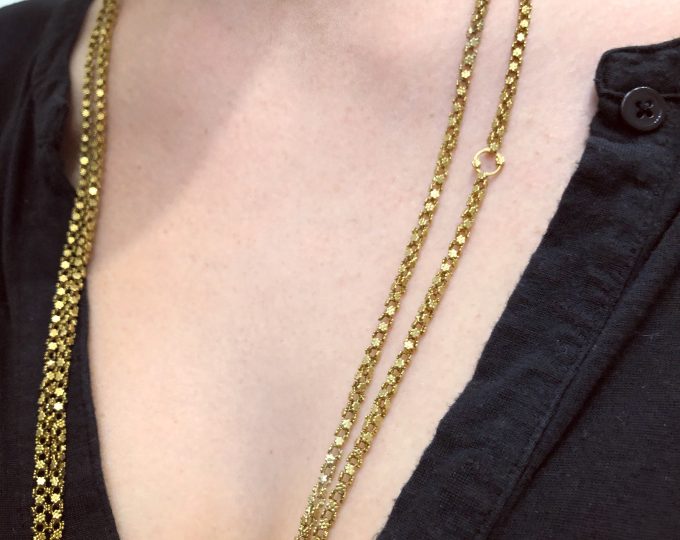 SOLD: Victorian fancy flower-link gold guard chain, 58 inches, circa 1880