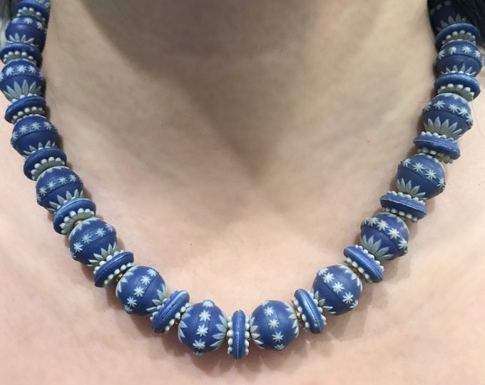 SOLD: Georgian Wedgwood blue jasperware bead necklace, circa 1800