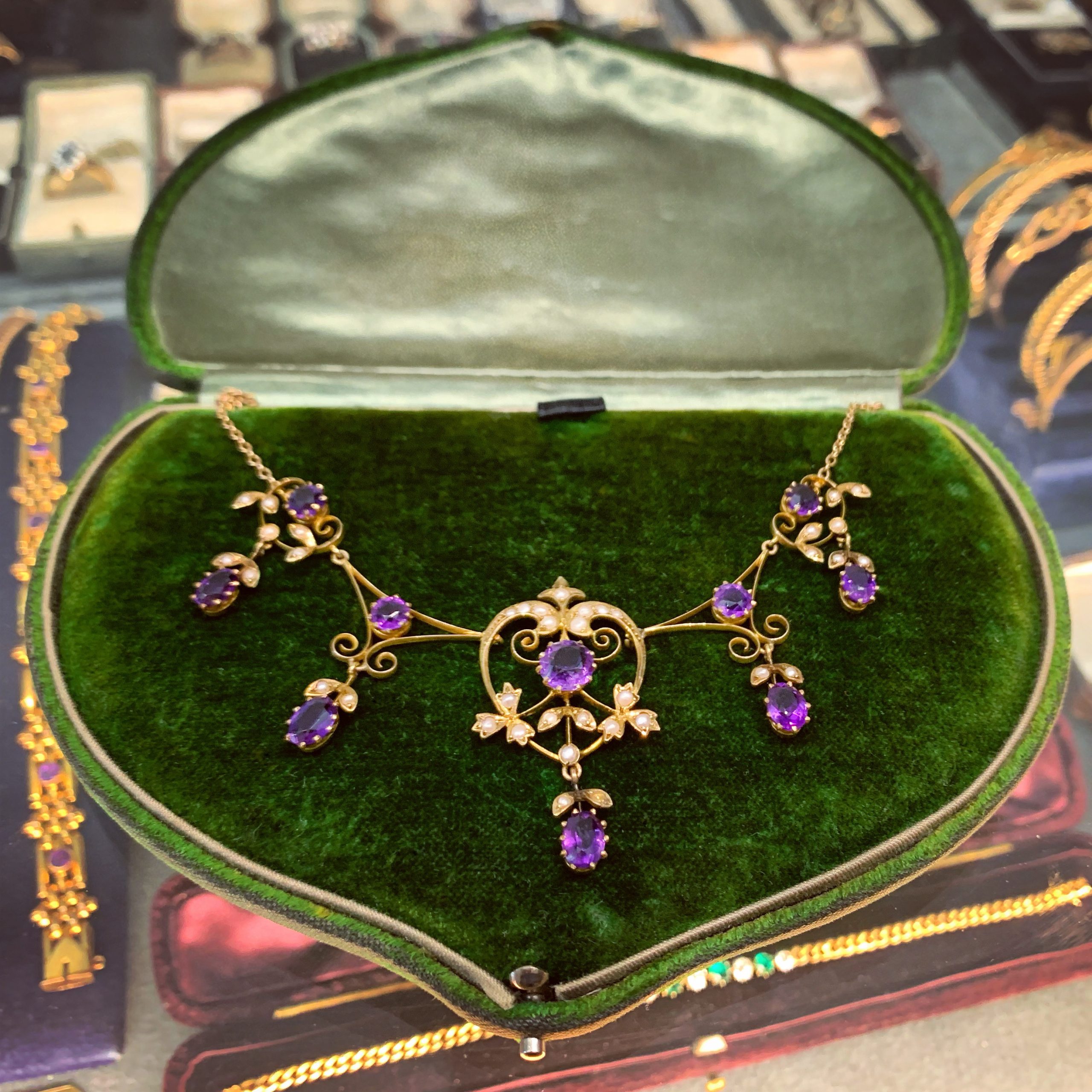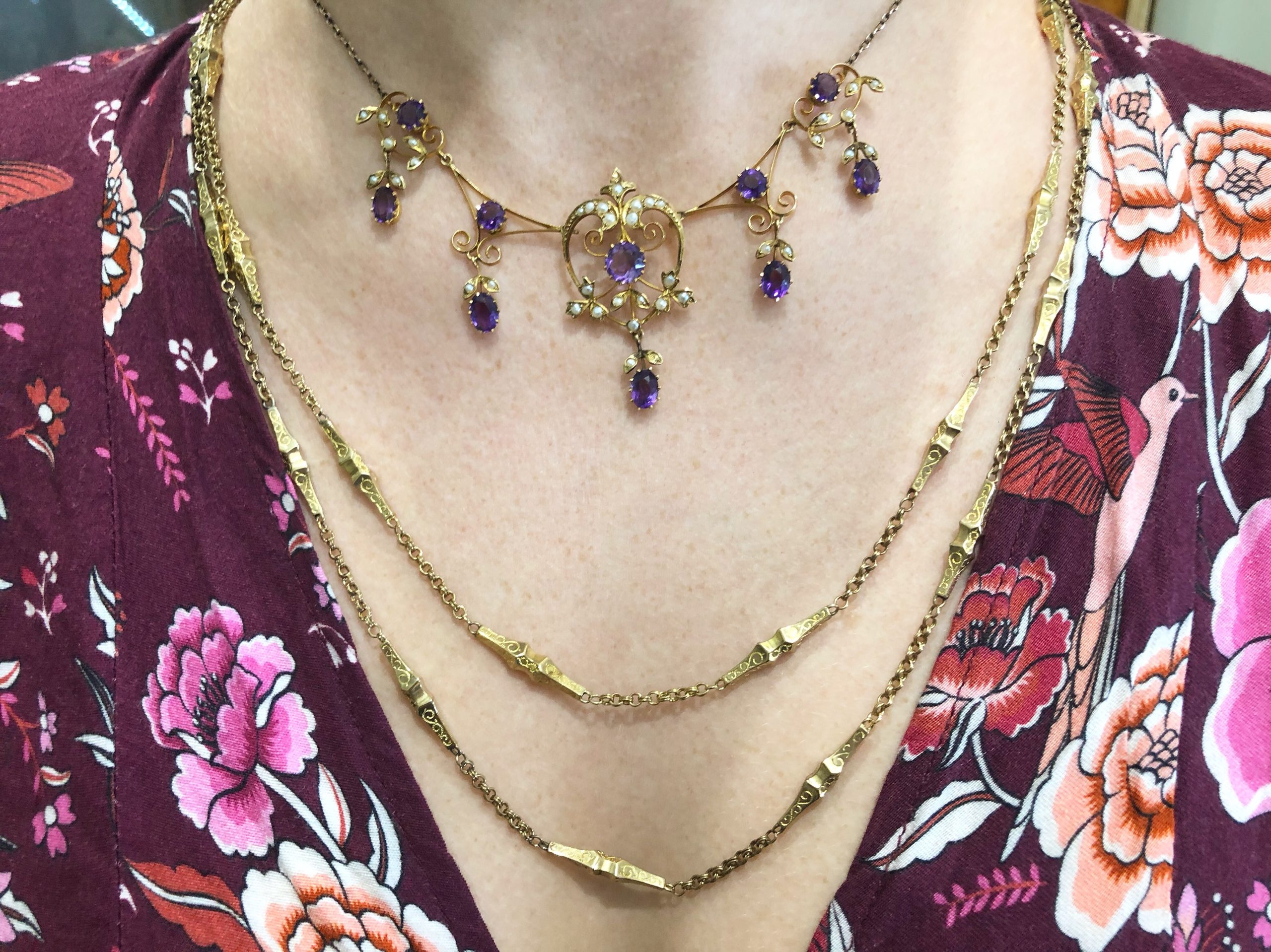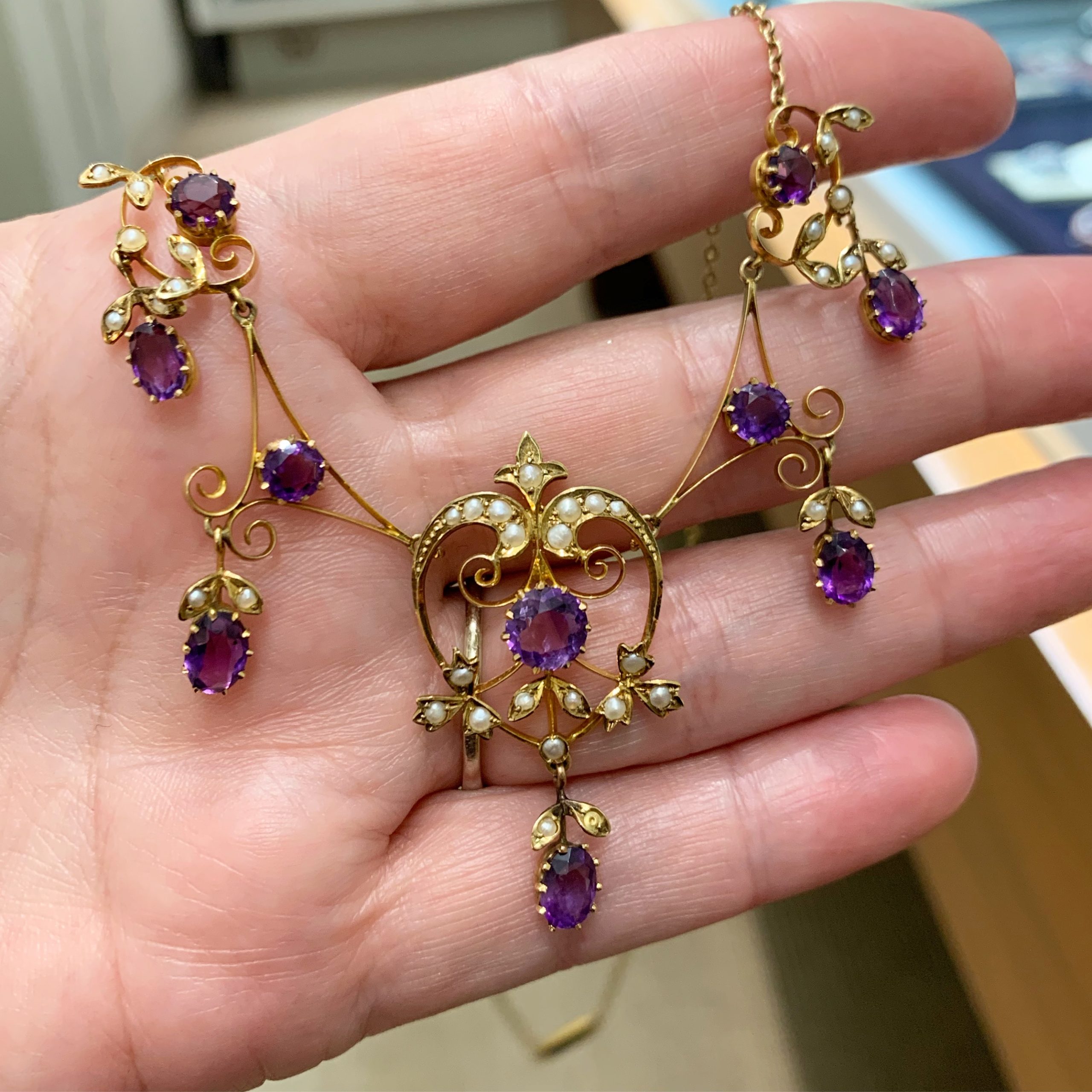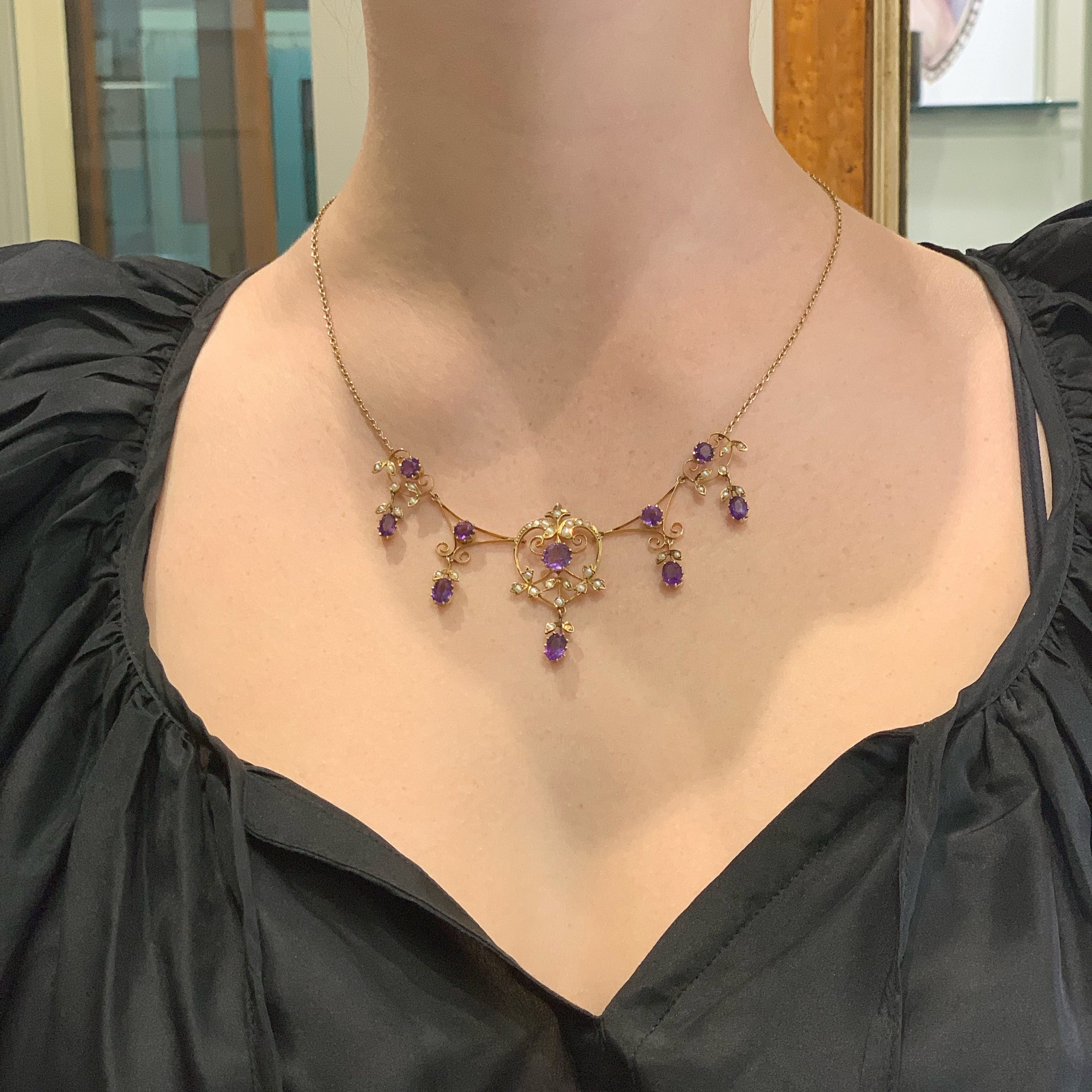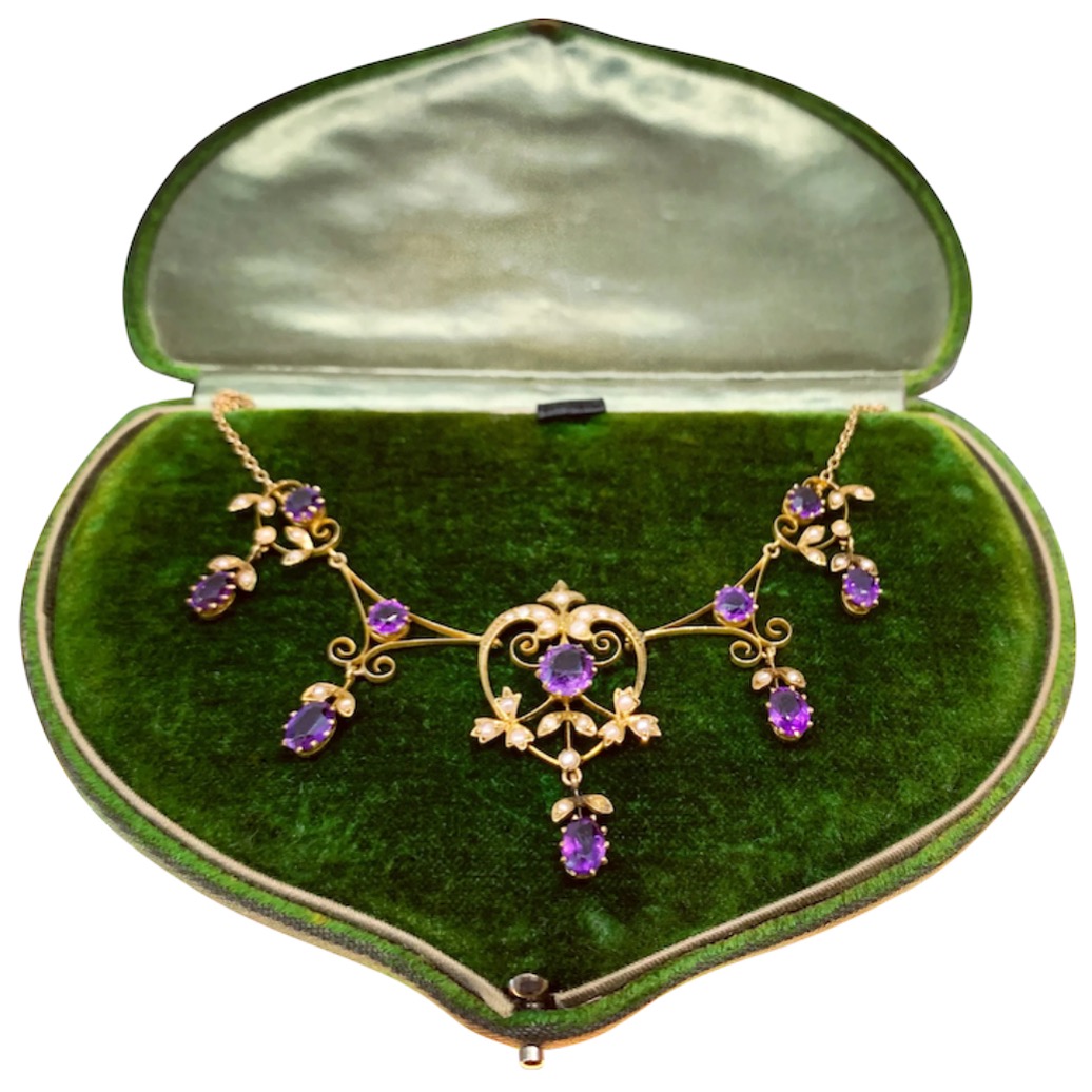 SOLD: Edwardian amethyst and natural pearl necklace, circa 1910