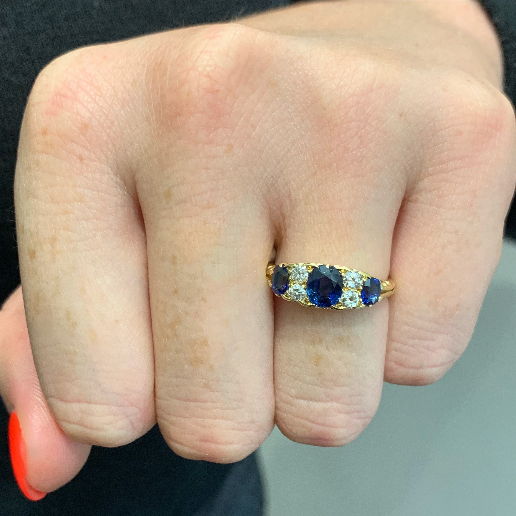 This appealing example has richly coloured sapphires, more lively and a bit lighter in hue than most Victorian stones.