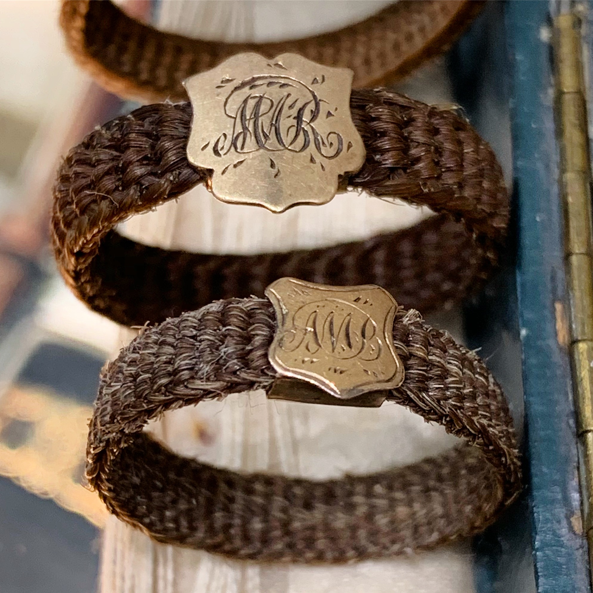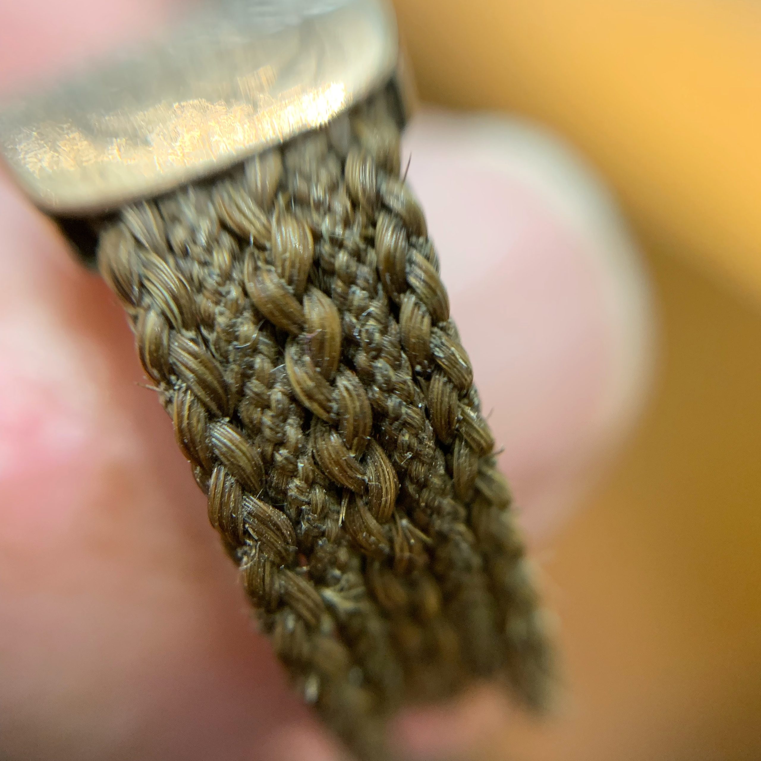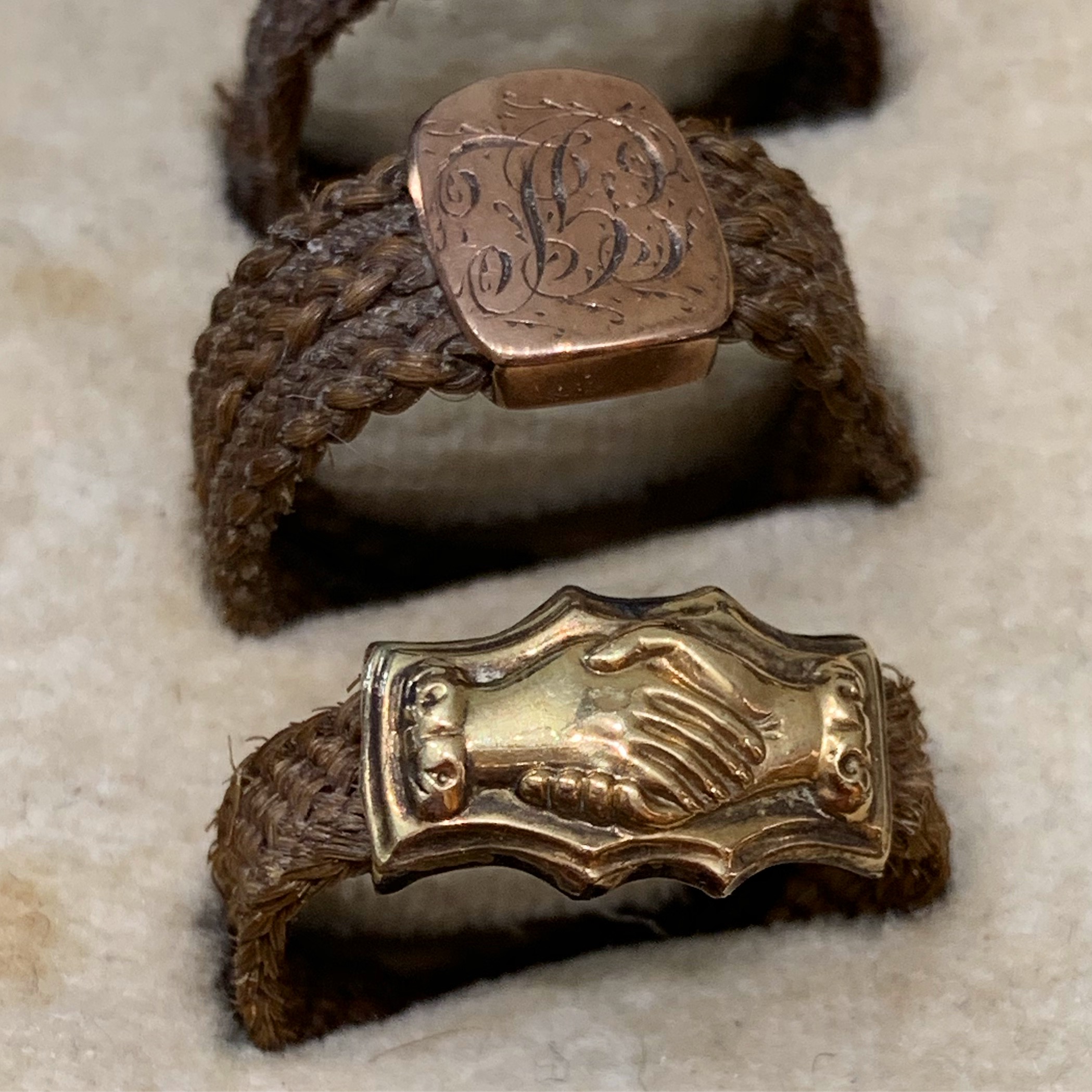 • Handmade in woven hair, each with a yellow gold or rose gold shield or adornment