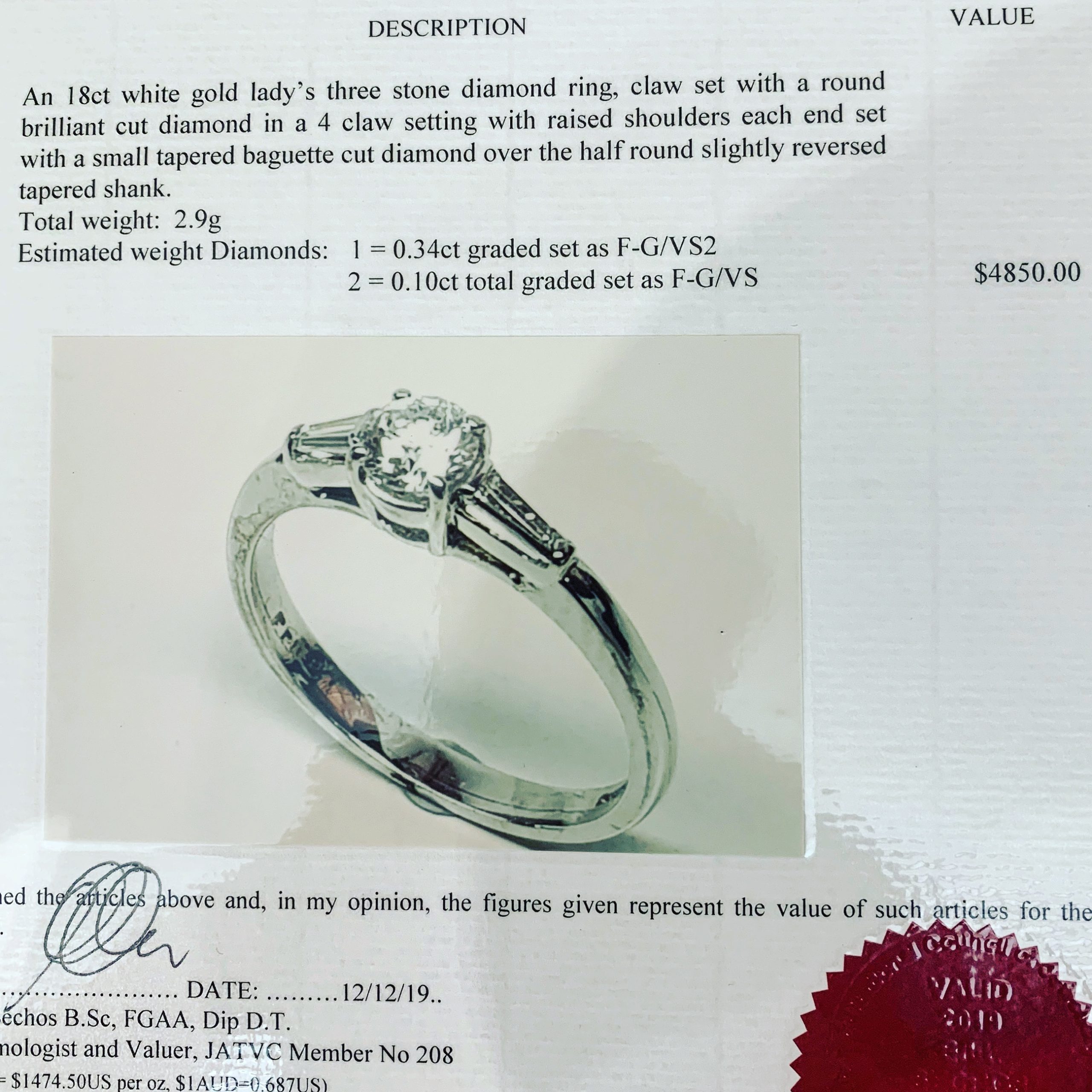 • Comes with an independent insurance valuation for $4,850