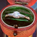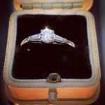 Though the setting is classic – late Art Deco in inspiration – this ring is not very old. It’s in my stock because it’s very good quality, in unworn condition, and far less expensive than an equivalent new or genuine Art Deco example.