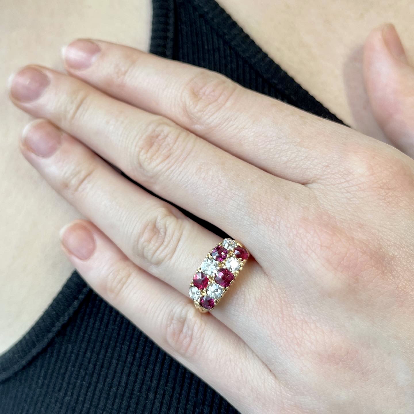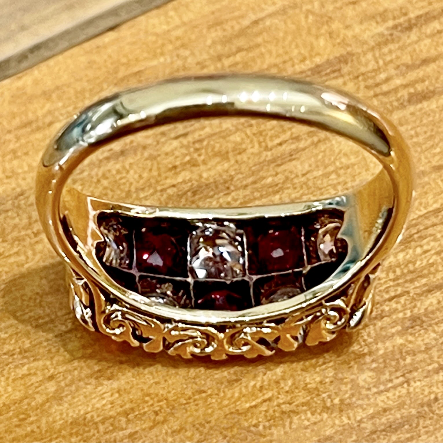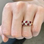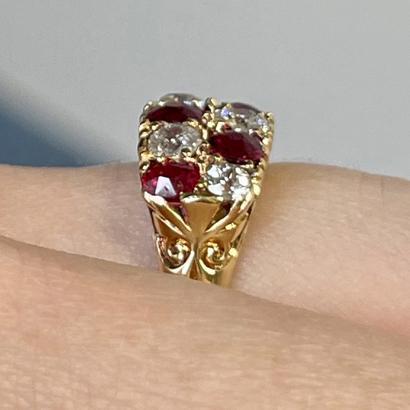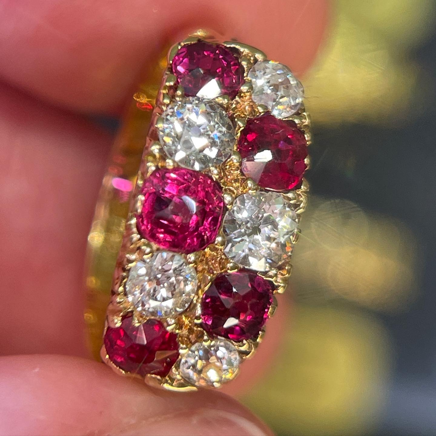 There’s a lot to love in this antique two-row ruby and diamond ring made in Birmingham in 1893.